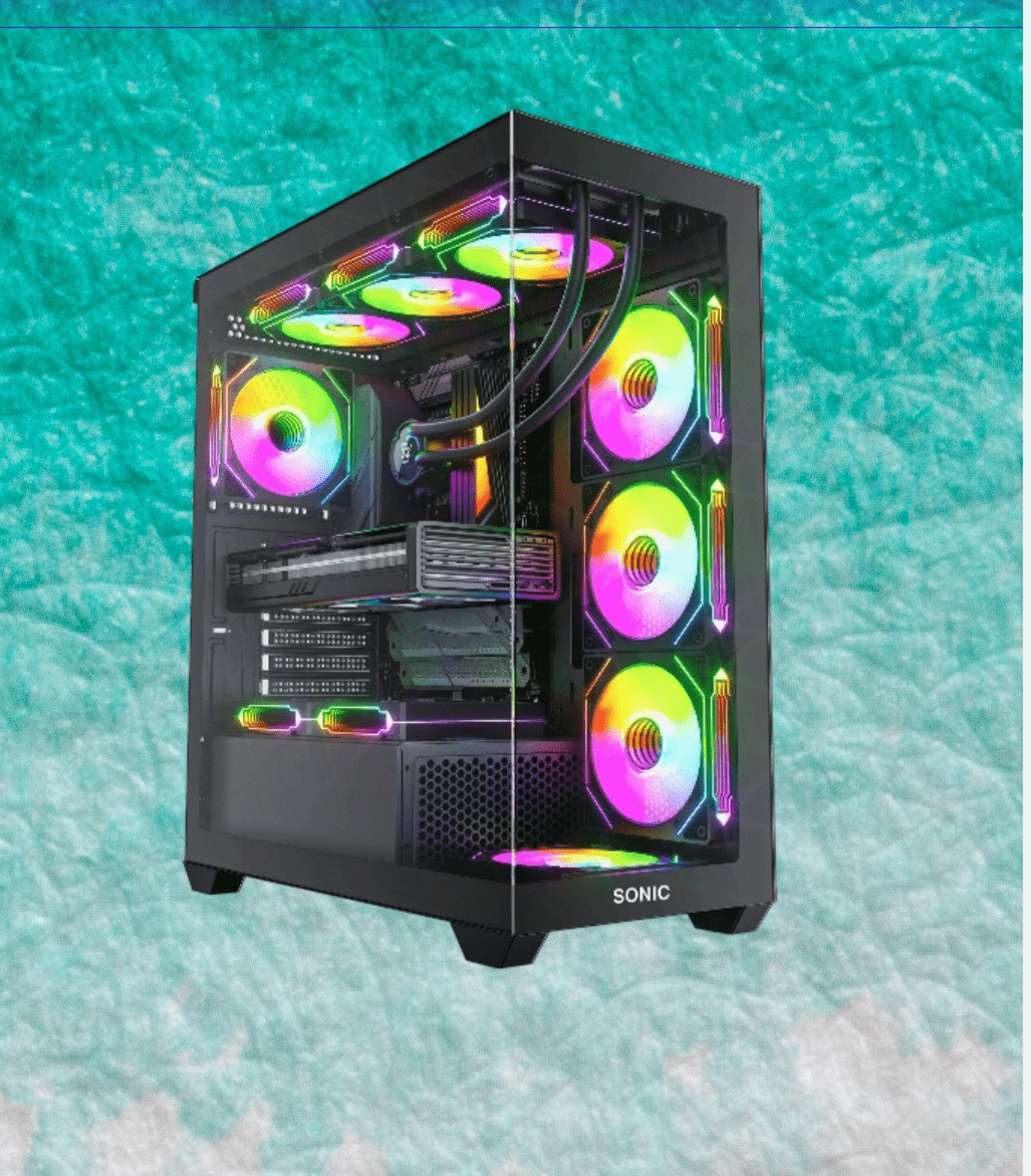 SONIC EL2 Black ATX PC Case with 4x Infinity Mirror Fans front side glass