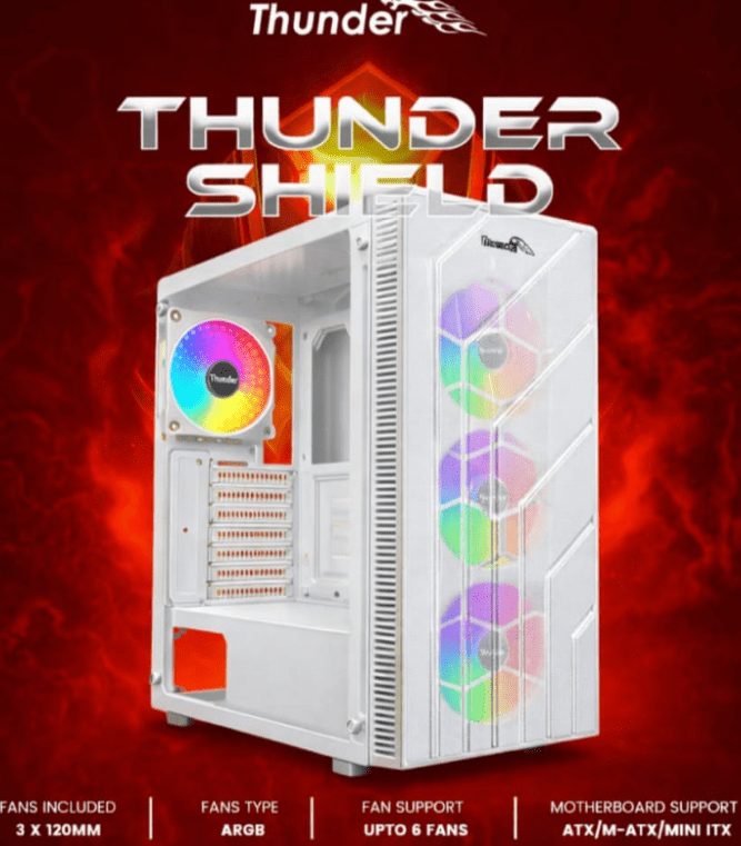 Thunder Shield ATX PC Case with 3x ARGB Fans(front mesh)(White)